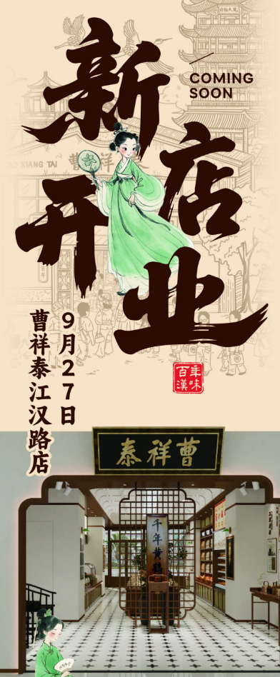 今年9月27日,曹祥泰全新打造的江汉路武汉伴手礼概念店正式开业。
