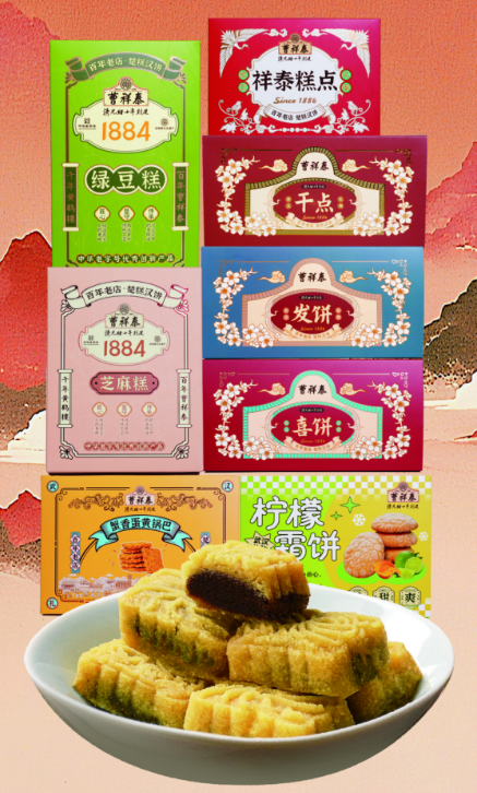 这个创始于清光绪十年,至今已有141年历史的中华老字号,以「逛黄鹤楼,尝曹祥泰」的文旅定位重装亮相,为来自全国各地的游客提供武汉特色的楚糕汉饼手信。