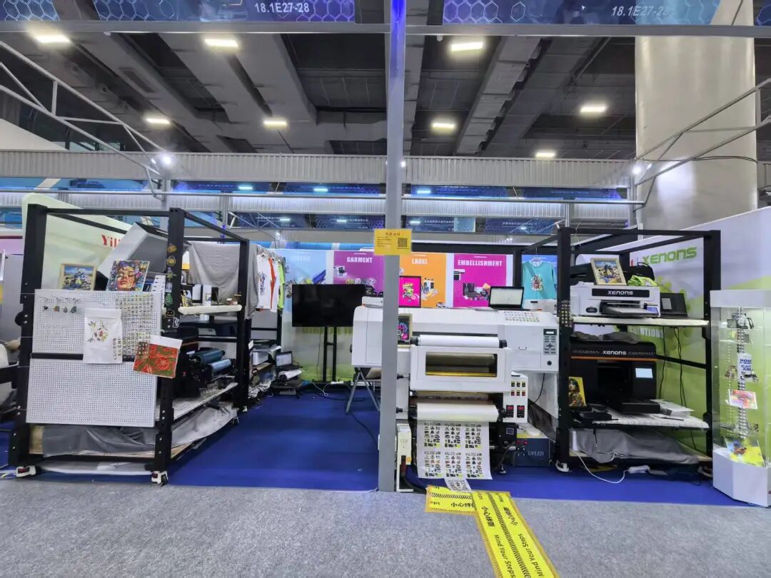 而在成衣打印区,DTG直喷技术正现场演示如何在一件白色T恤上一次性完成复杂图案的打印。色彩饱满、细节精准,吸引不少服装行业买家认真询盘。旁边搭载多功能打印系统的A3 DTF设备,则能够轻松应对多种面料,让纺织品类打印变得更加灵活高效。