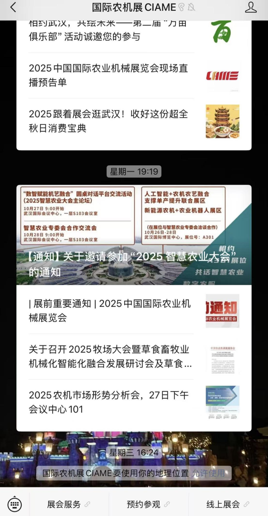 关注国际农机展官方微信“国际农机展CIAME”。点击“我要参观”,依次选定参观日期、填报个人基本信息、调查问卷,提交后生成闪烁二维码的“电子参观券”,完成预约登记。现场出示“电子参观券”,并接受扫描二维码后领取观众证快速入场。