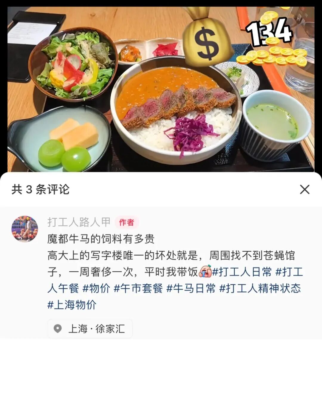 北京的68元盒饭,两荤两素配米饭,除了贵都挺好。在上海徐家汇,134元的一人食午市套餐是很多白领的日常选择。