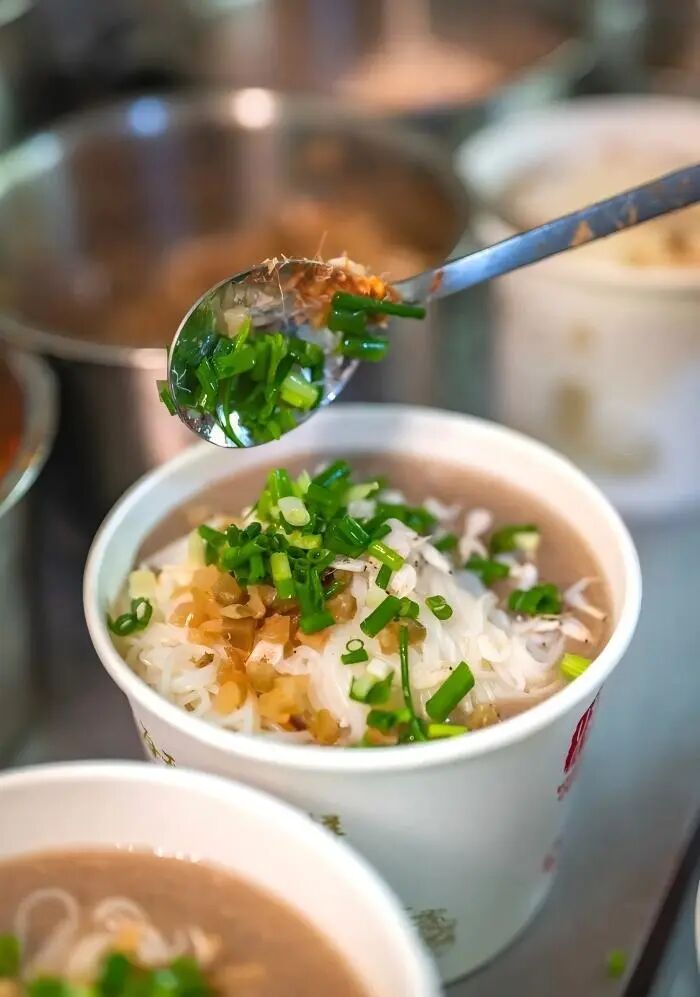 鲜鱼糊粉的原材料是新鲜的小喜头鱼,处理干净后入锅熬煮约5-6小时,留下鱼汤,兑入米粉,加入磨好的黑胡椒粉去腥,继续熬,鲜香扑面而来。