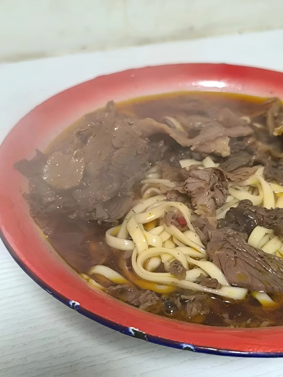 不同于其他面馆,他家主打牛肉,口味自成一派,牛肉用的是新鲜黄牛后腿肉和腱子肉。纯粹的牛骨熬汤,熬汤时什么香料都不放,就是纯粹,让牛肉本身的香气最大化发挥出来,吃的就是原来的老味道。