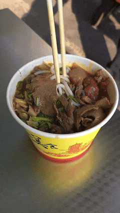牛腩卤香十足,软烂偏甜,入口化渣,再嗦上一口劲道香醇的热干面,柔与刚在口中交织,其味无穷,唇齿留香。