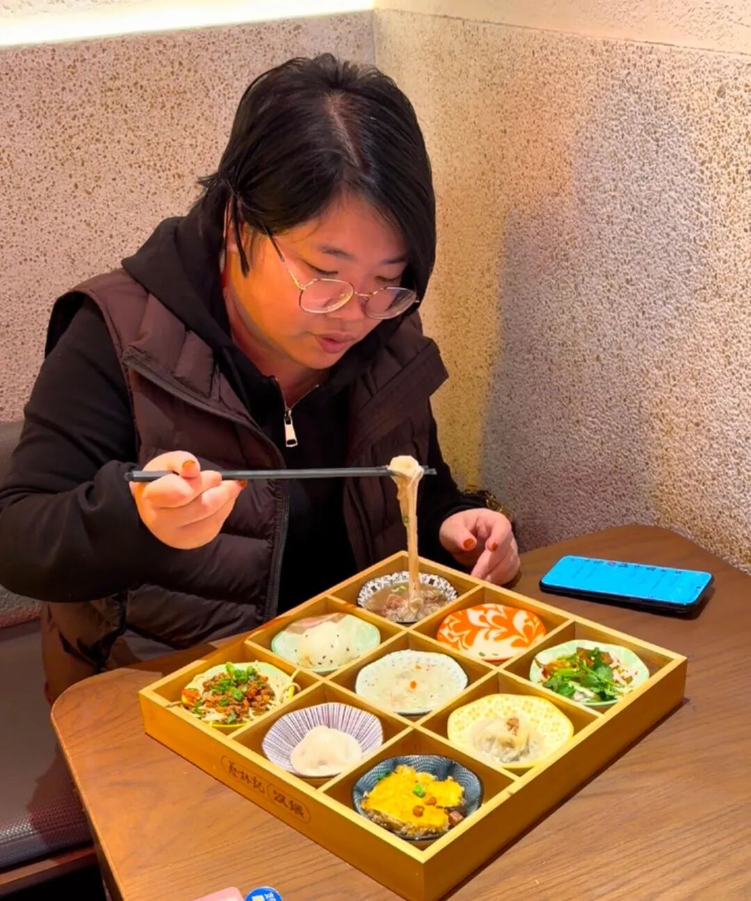 九宫格的设计灵感,正是为了满足游客“一次性品尝多种武汉美食”的需求,打破传统早餐分量大、选择难的局限。蔡林记运营总监刘石磊介绍,年轻人喜欢拍照打卡,他们设计拼盘时还注重颜值与社交属性。“九宫格形式最早用于点心、火锅等品类,我们借鉴过来,也让顾客方便拍照分享。”