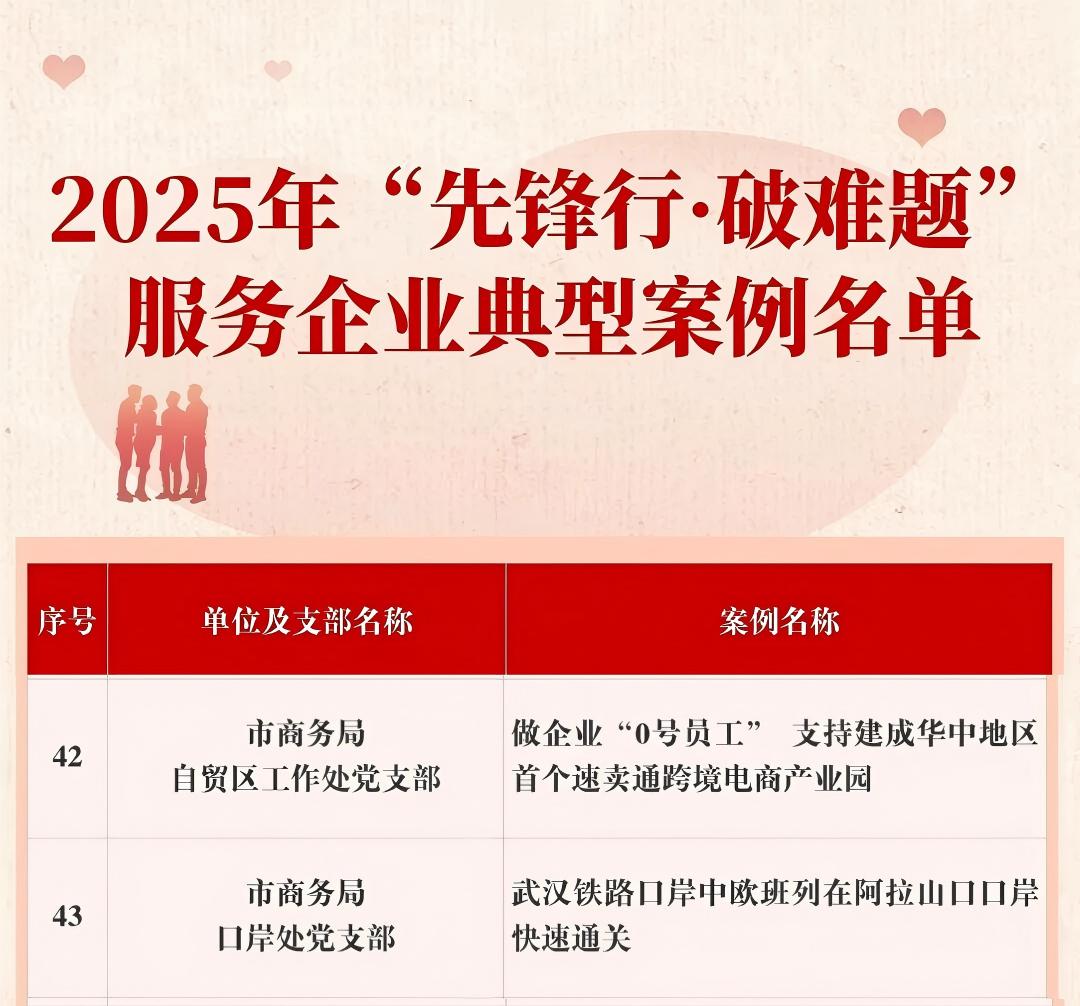 发布日期:2026-01-13 18:20:27 文章来源:武汉市商务局2025年,市商务局系统基层党组织坚持围绕中心、建设队伍、服务群众,着力推动党建和业务深度融合、相互促进,积极发挥基层党组织的战斗堡垒作用和党员的先锋模范作用,参加市委市直机关工委组织的“先锋行”系列活动,展示“红色引擎·商务先锋”风采。1个机关纪检品牌、1个基层党建品牌获得评定,4项工作入选“英雄城市·模范机关”建设案例,2个支部在《先锋直播间》亮先锋赛精彩,1个支部参加“立足岗位·争创一流”先进事迹报告会,2个支部书记的发言在“支部书记谈转型”栏目转发,1名副书记展示机关党务干部风采,5位党员干部学习贯彻党的二十届四中全会精神的体会被“武汉机关党建”摘登。