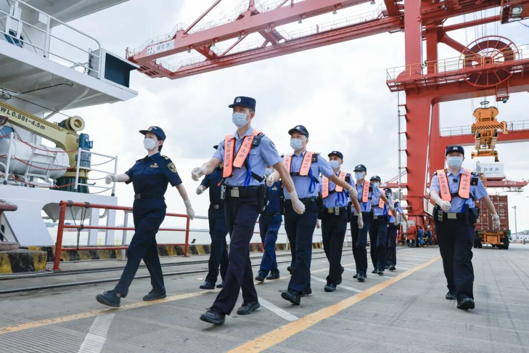 武汉新港海关关员在武汉阳逻港开展直航船舶监管