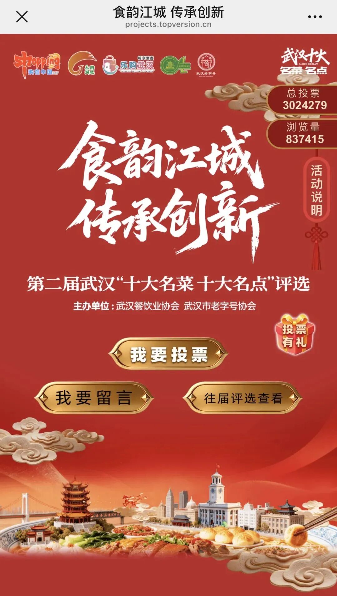 1月26日市民投票通道全面开启!截至目前,活动总投票数已突破300万,累计浏览量超83万。您的选择,将直接决定哪些武汉味道能“C位出道”!