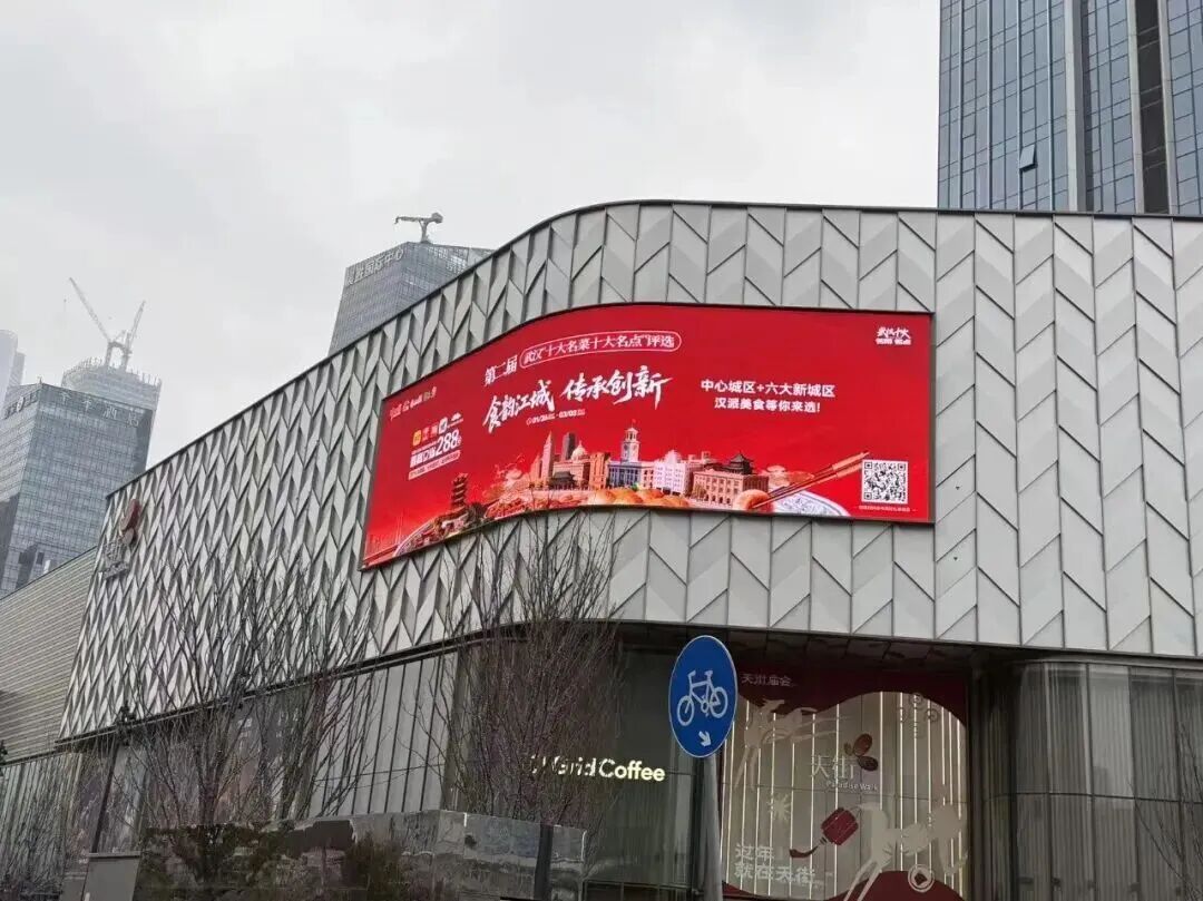 武商梦时代、武商MALL·众圆、武汉万象城、武汉滨江天街、群光广场、群星城、中南商业大楼、汉商21世纪、汉商银座大厦、光谷步行街、江夏永旺等核心商圈的户外大屏及室内电子屏,已成为展示武汉美食的璀璨窗口。