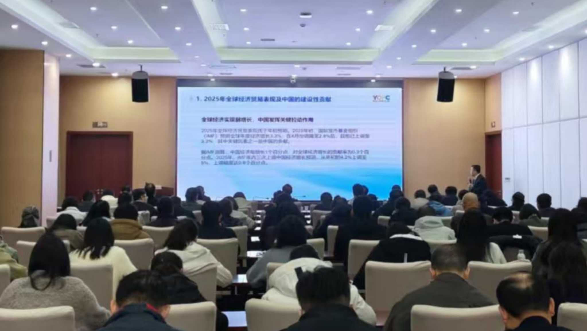 发布日期:2026-03-05 08:53:15 文章来源:武汉市商务局3月4日,市商务局举行党组理论学习中心组(扩大)学习专题报告会,邀请外贸龙头企业长飞光纤光缆股份有限公司党委常务副书记、纪委书记、工会主席,工信部全国党建培训班专家张光华同志围绕“当前国际经贸形势及挑战”进行专题授课。张书记立足全球视野梳理经贸发展整体态势,结合龙头企业出海实践,从2025年全球经贸形势回顾、2026年走势研判、长飞光纤的破局实践、未来发展展望四个方面,深入分析了当前外经贸工作面临的挑战,明晰了破局发展的思路方向,对准确把握当前国际经贸大势、提升统筹推进外经贸工作和服务企业“出海”的能力水平、推动商务“十五五”开好局、起好步,提供了极具实践意义的参考。