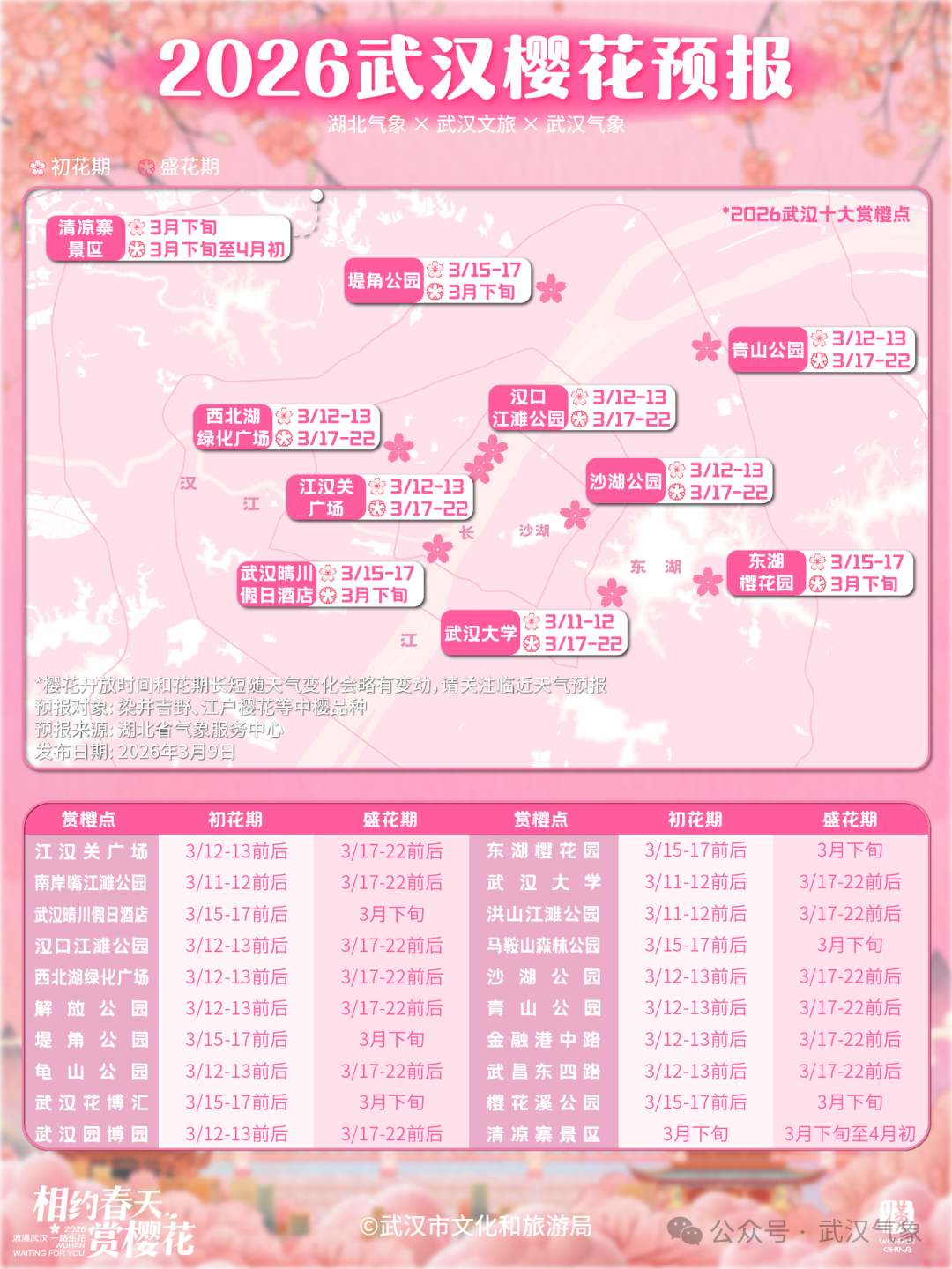 小浪花特地寻来2026武汉樱花预报↓