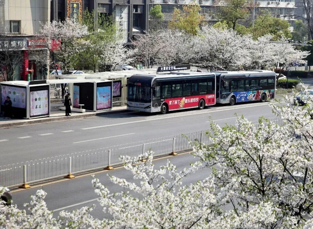 大黄村公交站被樱花环绕