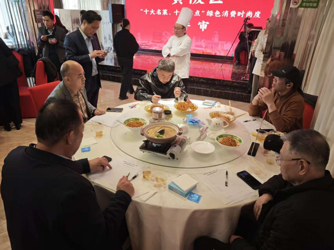 为保证评审的专业与公正,主办方特地邀请中国烹饪大师、中国面点大师、武汉市大城工匠、楚文化研究员、大学教授、中国餐饮文化大师、营养学专家、著名节目主持人、自媒体大V、2025年度评选出的大学生推荐官等10位嘉宾,分别组成了名菜评审组和名点评审组,开展了绿色消费时尚度线下评审。