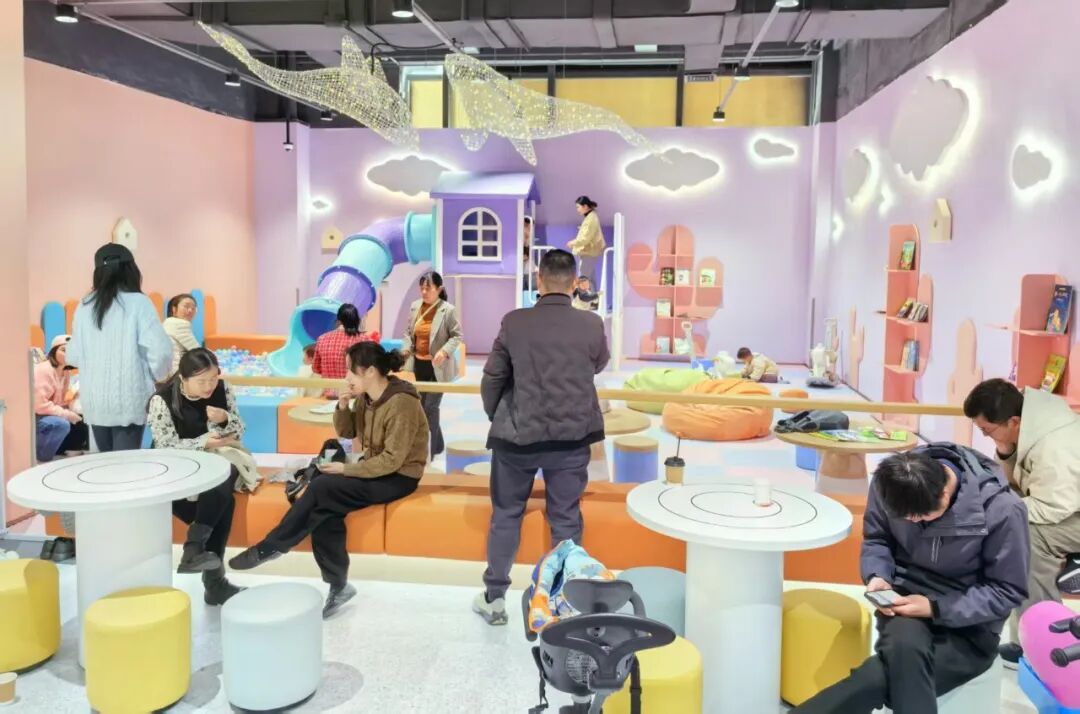 惊喜的是这里还藏着一座小型儿童乐园,宝妈尽情逛,宝爸在这里陪娃,简直不要太贴心。装修软萌又安全,滑滑梯、海洋球、益智玩具一应俱全。