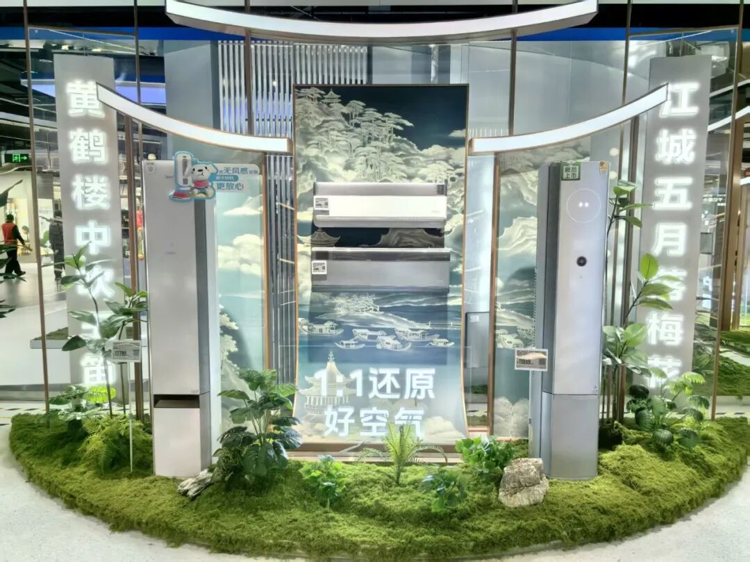 空调区从壁挂式到中央空调,节能款、智能款应有尽有,不少品牌精心搭建出新风体验间、无风感体验间,营造身临其境的真切感受。