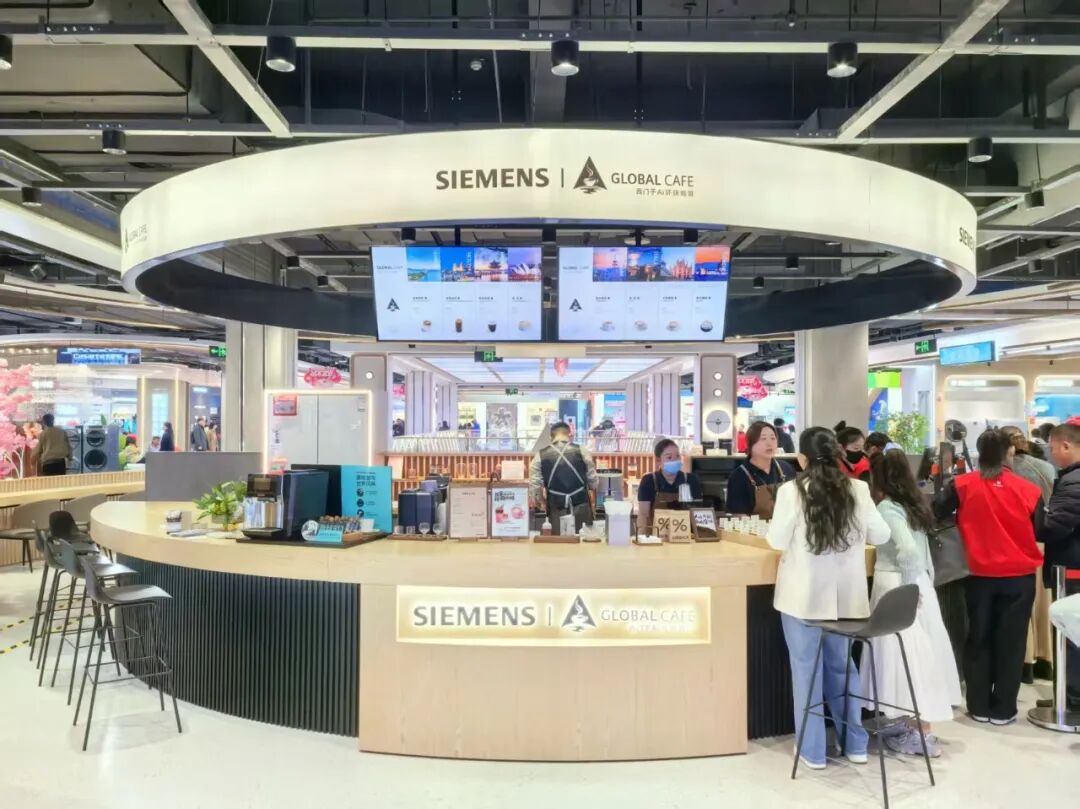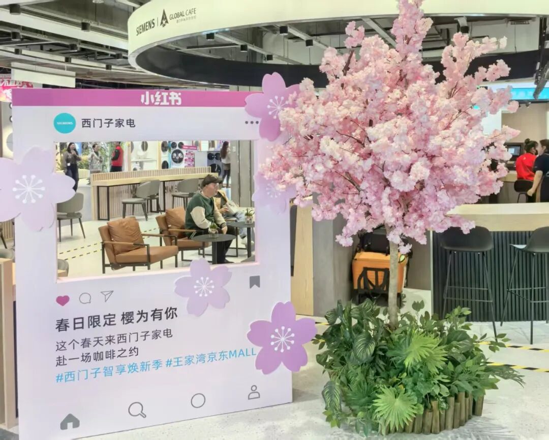 逛累了,还能到西门子AI环球咖啡吧坐坐,在粉粉的樱花树旁打卡留影。