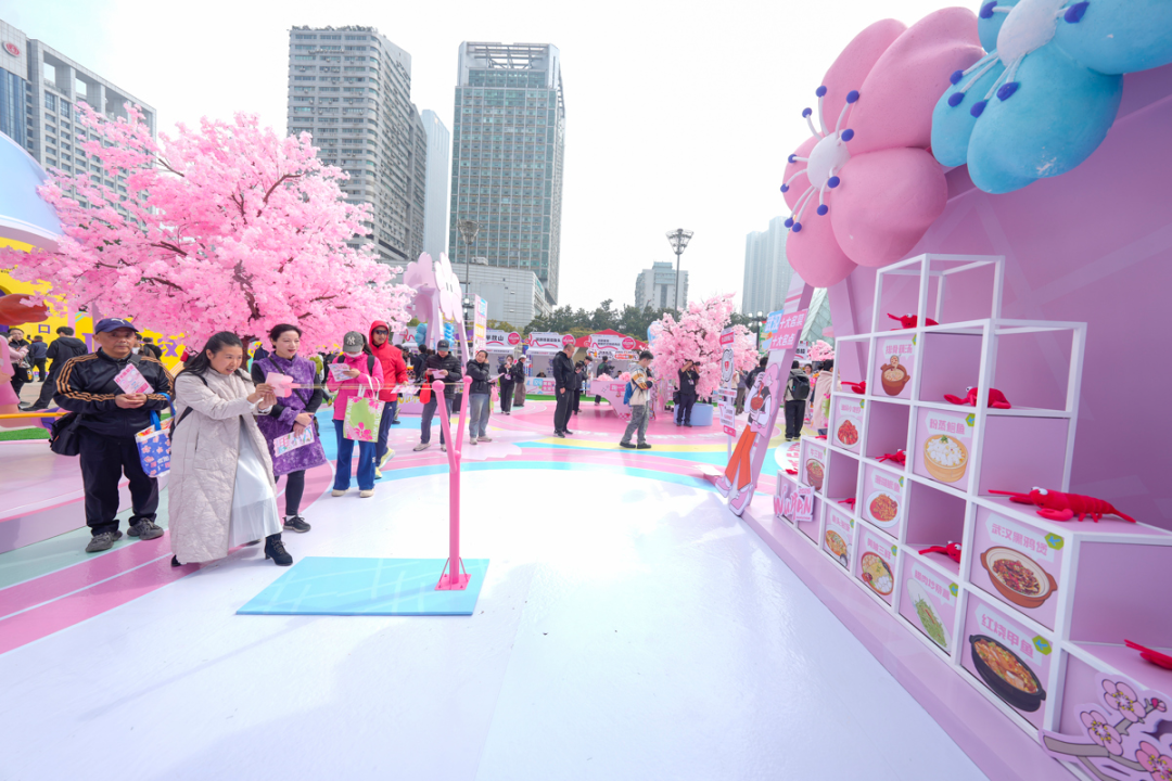 在游戏互动体验区,指尖马拉松、十大名菜名点弹射和樱花拍拍乐三种游戏吸引不少市民排队体验。市民游戏通关后,即可在打卡地图上获得一枚印章。集齐3枚印章便可参与抽奖。奖品包括由新力有家提供的热干面套餐、消费优惠券等。
