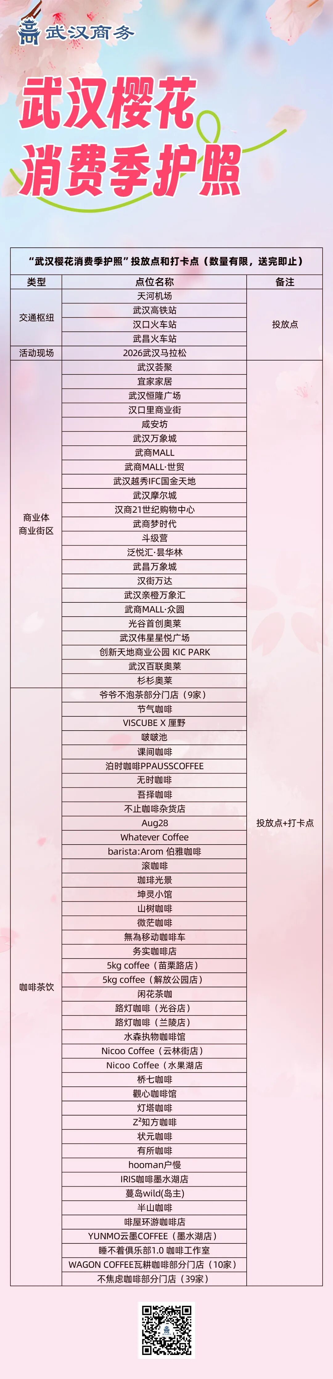武汉樱花消费季护照投放点+打卡点位