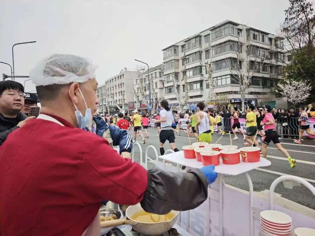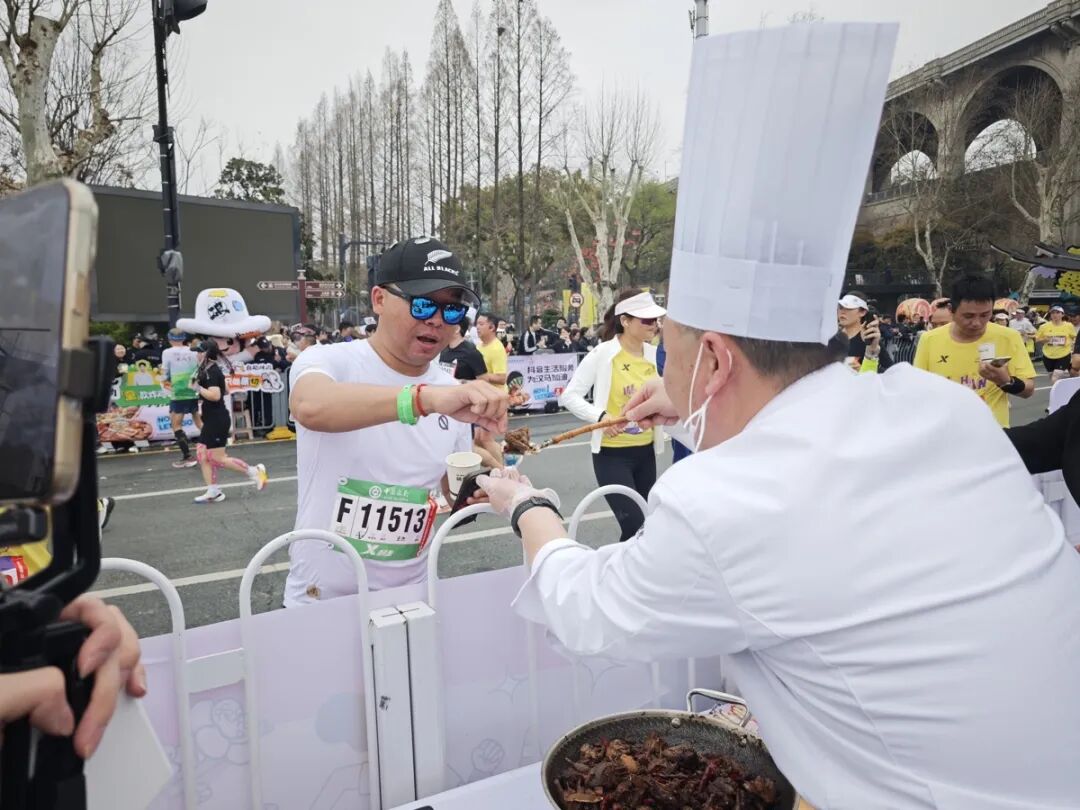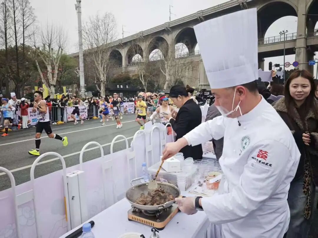 武汉马拉松汉味美食补给点:大厨现炒热情“投喂”,选手感叹“吃不完,根本吃不完”
