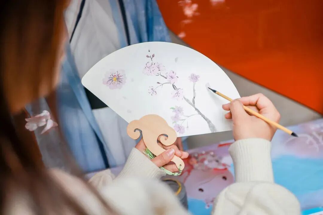 趣味互动,尤其受到游客欢迎,来自广州,陪着女儿在扇面上画樱花的陈女士,盛赞活动有创意,“旅途中非常美好的偶遇,既可以短暂休整,做完的樱花成品带回家,特别有纪念意义”。