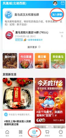 加小盒方式:打开盒马APP,定位小区后点击下方盒区生活进入页面,加入盒社群,即可@小盒咨询。详见下图: