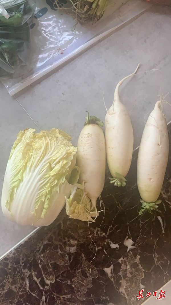 当天下午,他还在小区群收到消息,有热心业主为大家筹措到免费蔬菜,有大白菜、白萝卜等品种,赶紧拿着袋子下楼按秩序领取。“菜品蛮新鲜的,领了1棵大白菜、3个白萝卜”,徐先生高兴地说道。