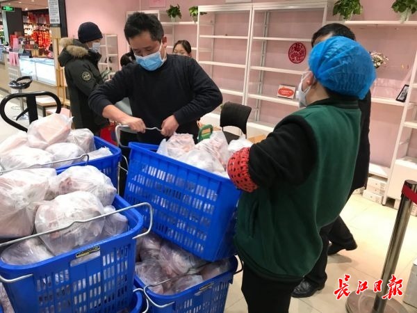 中百仓储台北路店王燊告诉长江日报-长江网记者,他春节期间上班时发现,店里蔬菜区、肉品区的顾客特别多,打秤台排起长队。为了缓解排队现象,“蔬菜线上预订,到店自提”的模式火速“上线”,店里的四个微信群几天之内加到2000人。