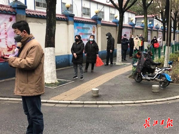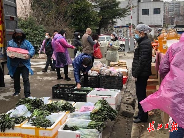 发布日期:2020-02-16 09:39:00 文章来源:长江网长江网2月15日讯(记者张维纳)2月15日,在青山翠园社区门口,十余位顾客拎着购物袋,相互间隔一米排着队,等着领取武商超市直送小区的蔬菜包。“雨雪天气你们还能把菜送到门口,免去我们多少麻烦啊!”社区居民王阿姨戴着口罩向超市员工和社区志愿者竖大拇指。