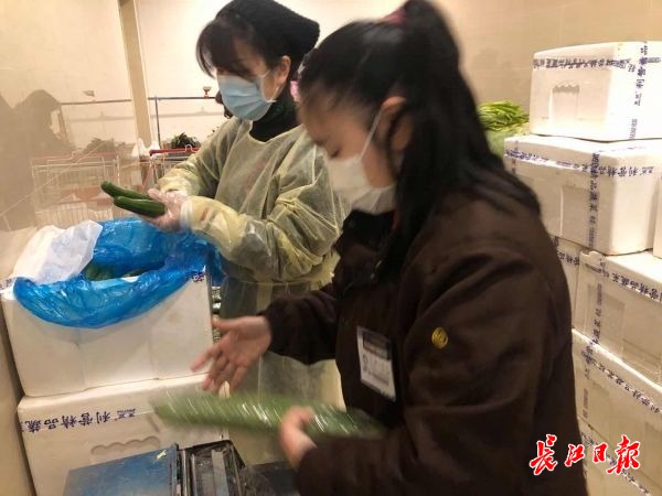 武商众圆超级生活馆店长毛雨香告诉长江网记者,在超市和青山区商务局的共同配合下,从2月14日开始,他们两天时间已经走进了青山区聚友、康苑、和平、翠园和才聚五个社区。“每去一个社区,大家都很欢迎。”毛店长介绍,区商务局会联合社区提前一天将居民的采购需求统计后交给超市,超市员工会在当天早上将蔬菜按套餐的模式分装好,打上价格,“我们负责准备菜品,社区志愿者和工作人员会开车过来接货,并且帮我们维持现场售卖秩序。”毛店长告诉记者,15日当天,他们共在社区售卖200份物资。