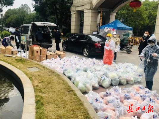 发布日期:2020-02-16 09:51:00 文章来源:长江网长江网2月15日讯(记者孙珺)坚决切断传染源,全市小区封闭管理,市民买菜怎么办?各大连锁大卖场、便民超市、便利店迅速行动,开启“社区团”,为居民将菜、蛋、肉等生活必需品送到小区门口。超市员工当起协调员、快递员,身兼数职。