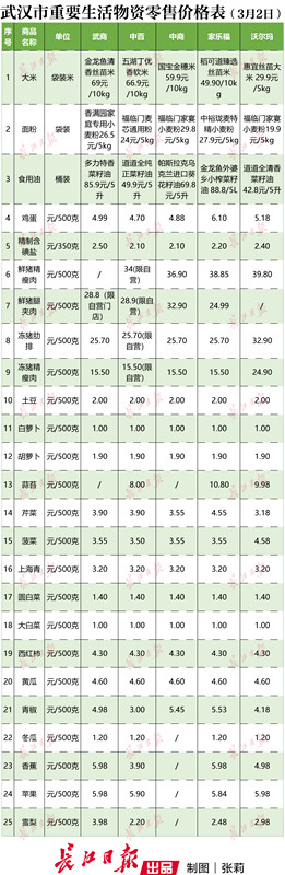 武汉五大超市3月2日重要生活物资零售价格公布