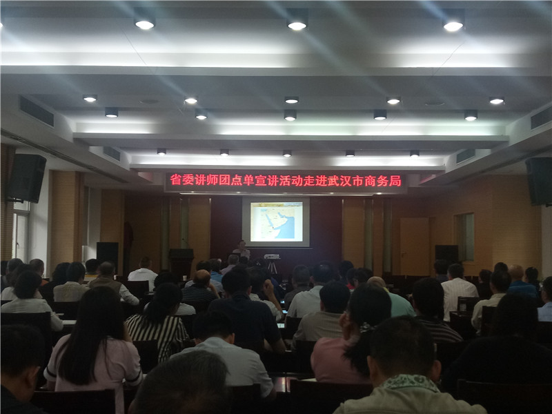 发布日期:2018-05-22 16:27:50 文章来源:商务局 5月21日,市商务局邀请省委讲师团成员、武汉大学李荣建教授作客我局,做了题为《“一带一路”沿线阿拉伯国家国情及风土人情介绍》专题报告。局领导、局机关全体干部、局直属单位班子成员参加了报告会,报告会由市商务局副局长、党组成员蔡东霞主持。