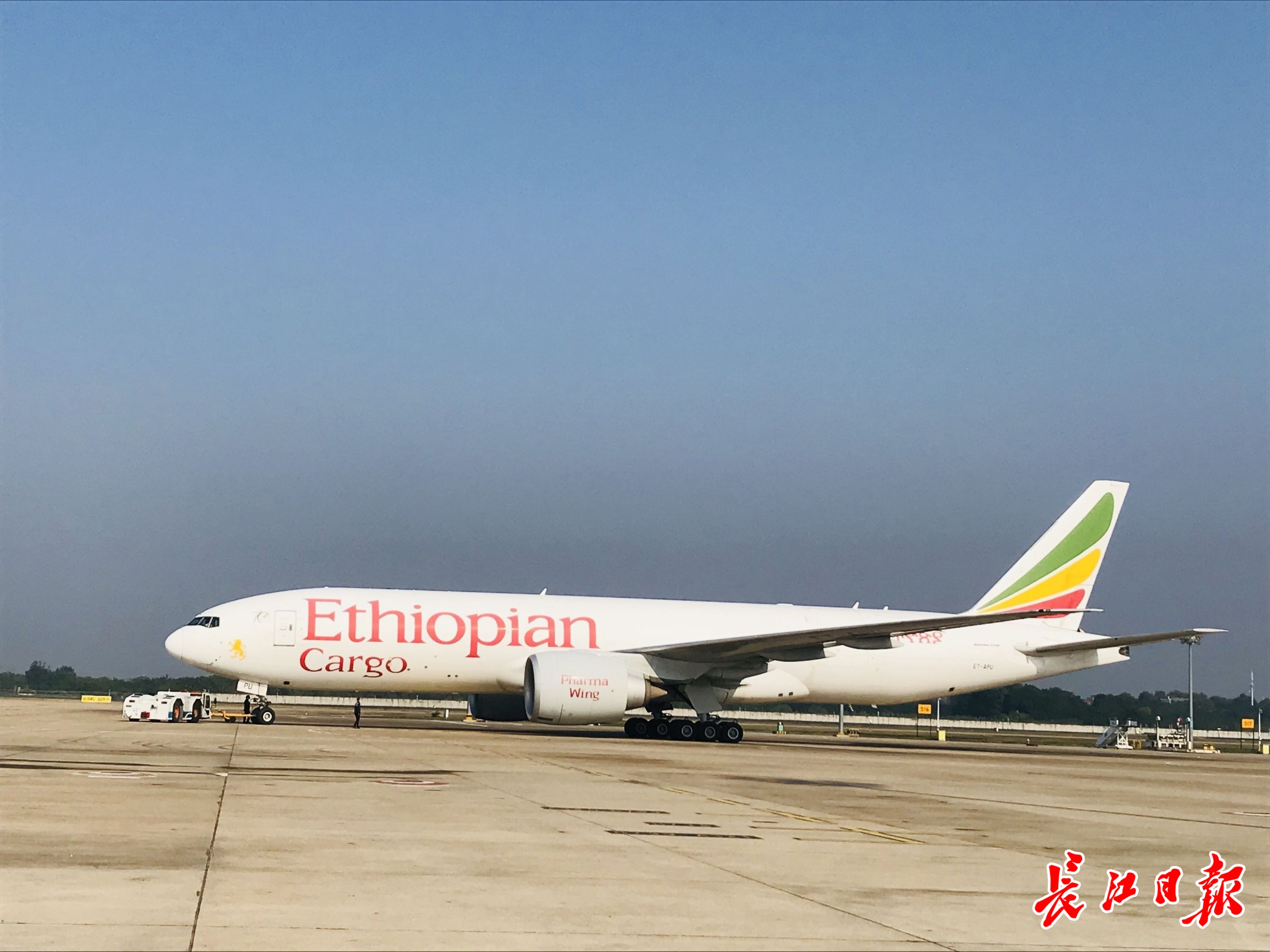武汉-亚的斯亚贝巴的货机。记者王谦 摄