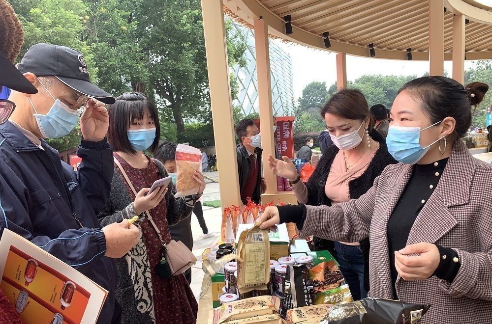 10月17日,正值第7个国家扶贫日,武昌区“消费扶贫月”汉街市集在楚河汉街太极广场开张。来自武汉市新洲区、江夏区,恩施州来凤县,宜昌市五峰土家族自治县等贫困地区的20多家精准扶贫品牌商户现场摆摊,展销特色农副产品,以消费扶贫助力脱贫攻坚。 “长乐蜜谷土蜂蜜产自五峰县柴埠溪大峡谷,由山里散养的中华小蜜蜂采集成千上万种野山花蜜酿制而成。我们的土蜂蜜色泽金黄,口味独特,纯净无染,被誉为‘蜜之精品’,大自然中的‘黄金’……”展销现场,五峰甜蜜谷家庭农场负责人向波涛热情推介深山土蜂蜜,邀请市民品尝。“我们前天从五峰专程开车来到武汉参加这次消费扶贫助农市集。”湖北五峰县渔洋红老窖坊负责人周枫介绍,现场展销的渔洋红苞谷酒、高粱酒都是纯天然酿造,口感纯正,深受市民喜爱。 不远处,市民将来凤县的农副产品展销摊位打了围。土猪肉、腊排骨、鲊广椒、野椿芽、香椿腐乳……琳琅满目的深山土特产品成了抢手货,大家纷纷下单购买。新洲区三店街展销的龙丘瓜蒌,含有椒盐、奶油、五香等六种不同口味,工作人员邀请消费者当场试吃。江夏区现场展销汉产砂糖桔,吸引不少市民购买。“这是我们今天早上刚从果园采摘的汉桔,特别新鲜。”现场销售人员向前来咨询的顾客推介。 洪湖藕粉、黄梅什锦豆粑、大别山黑木耳、五峰土家腊味、新洲桃胶、藤茶香皂、黑田园香米、媓鄂娘虾仁酱、羊肚菌……活动当天,汉街助农市集共设置30个摊位,商户现场展销的特色农副产品品类齐全、丰富多样,货值达12万元,备受市场欢迎,产品销售惠及当地贫困农户。“消费扶贫打通了消费者与贫困户之间的销售渠道,将质量好、价格优、特色强的扶贫产品精准推向市场,实现产销主体的精准对接,拓展了扶贫产品市场空间。”武昌区商务局有关负责人介绍,本次活动以消费扶贫助农市集为载体,整合全区对口扶贫与消费促进活动,采取线上平台与线下渠道相结合的方式,统筹资源推广销售扶贫产品,以消费扶贫促脱贫攻坚,助力疫后重振。据悉,“消费扶贫月”系列活动将持续到10月31日,为期15天。截至目前,武昌区助农市集已开展了5期,本次汉街市集是第6期。楚河汉街作为武汉地标性高品位步行街,自6月开展系列消费促进活动以来,已陆续举办“六月欢购节”汉GAI市集、“文创玩城”暨武汉青年力量战疫海报展、“武汉啤酒节”武昌分会场、“全国消费促进月”、“武昌金秋购物节”等主题活动,为城市首店经济、夜经济发展增添了活力。此次楚河汉街承办“消费扶贫月”汉街市集活动,继续以实际行动为消费扶贫助力,为消费回升加油。
