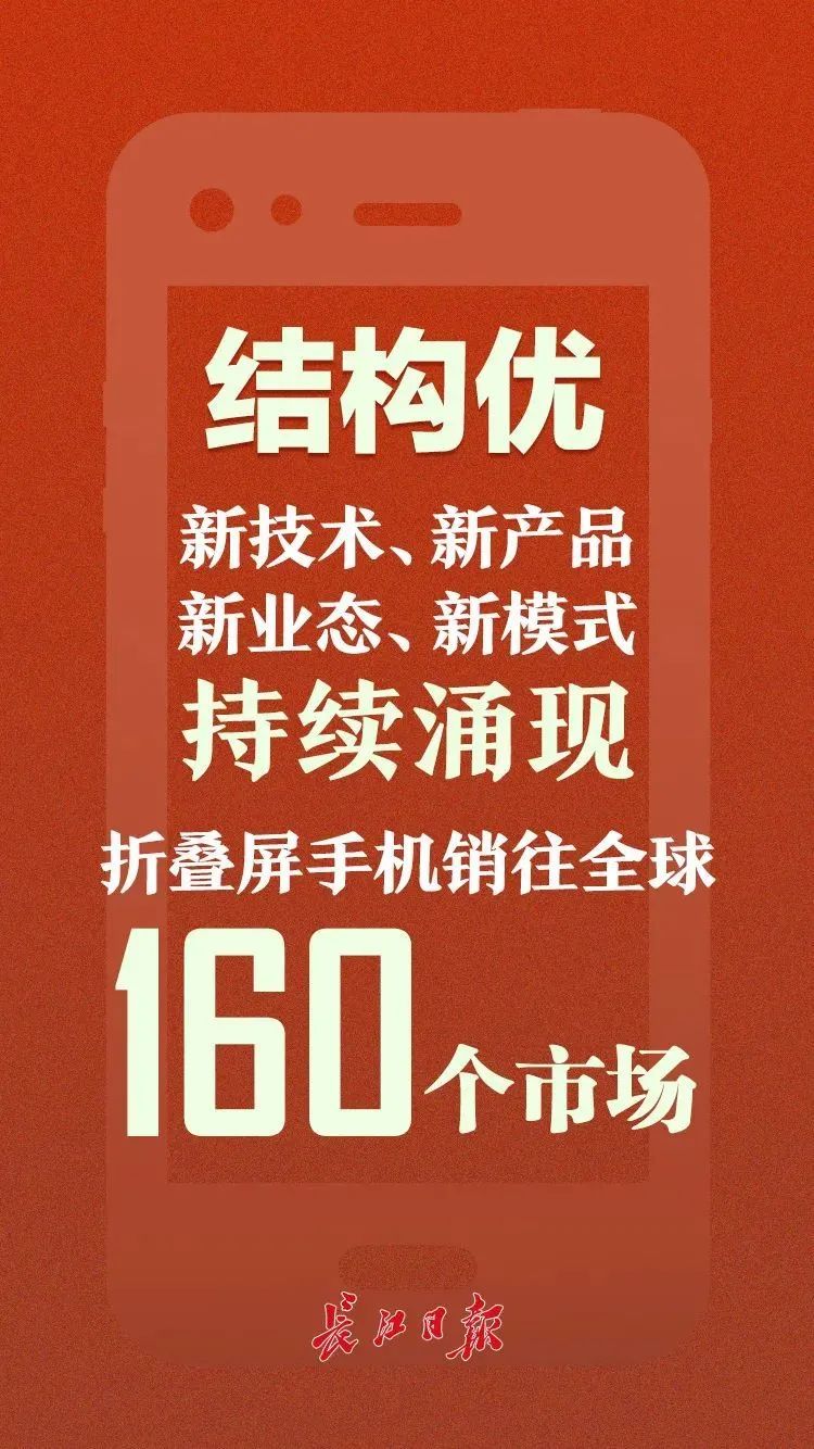 增长稳 三季度,武汉工业用电环比增加超10% 结构优 新技术、新产品、新业态、新模式持续涌现:折叠屏手机销往全球160个市场 活力强 超11万!武汉新登记市场主体户数连续4个月高于去年同期 市场兴 武汉三季度开票户数增长增速逐月增高 贸易活 武汉出口额前三季度实现正增长,9月份进出口均创年内新高 后劲足 今年以来,世界500强有300多家来武汉洽谈 民生实 武汉新增城镇就业16.8万,30.6万应届生获求职创业补贴