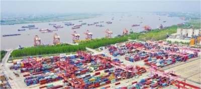 武汉阳逻港二期码头,“黄金水道”船只来往穿梭。 长江日报记者胡九思 摄 |