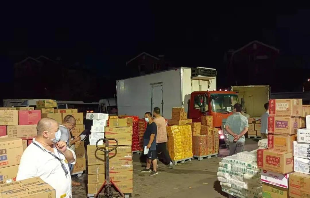 店长带领全体课长、员工奋战一线,加货理货,最大限度的保证供应量,满足顾客需求。8月2日收货当天,十几辆到货卡车,以干性食品、粮油物品为主,体积大、重量大,十分考验员工的能力和素质。一线员工搬货、卸货,衣服被汗水浸湿,湿了又干,干了又湿,直到次日凌晨2点,在门店员工的共同努力下终将商品分类打包,摆上货架。城市的月夜在头上,门店的灯光在心里,结束搬货的疲惫,一线员工顾不上休息,还在积极组织货源,确保第二天正常营业。金凯店全员用实际行动践行着中百的初心,体现了国有企业的责任和担当。