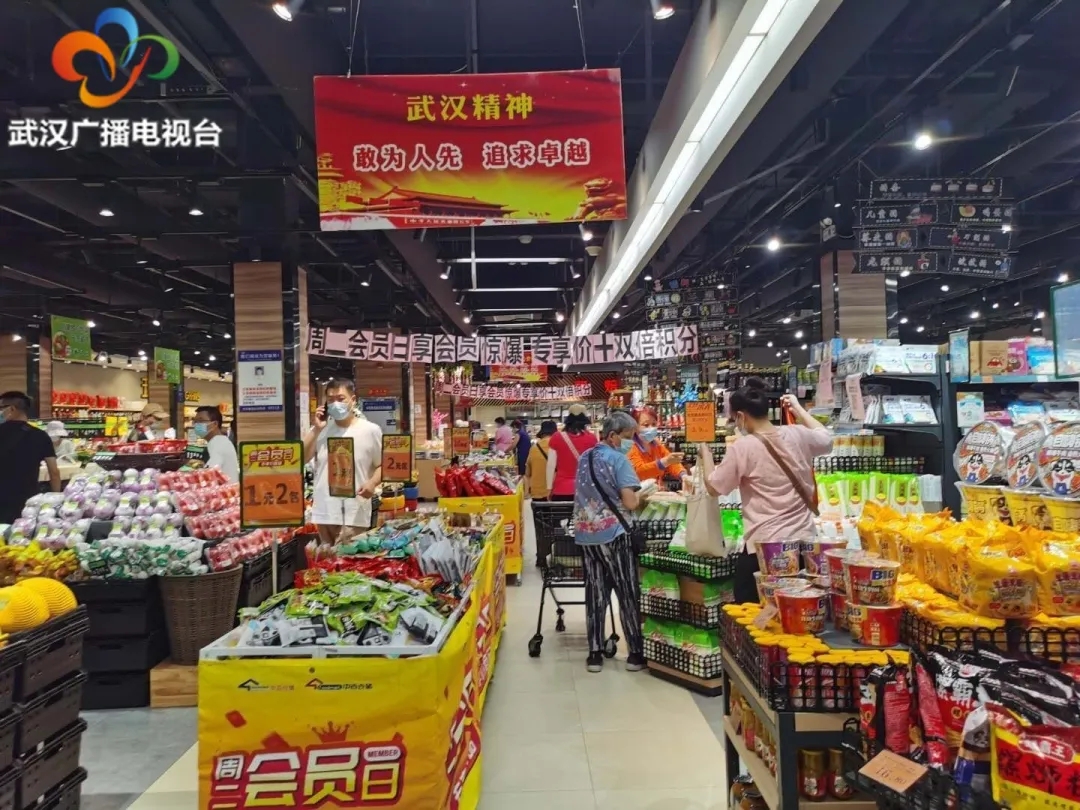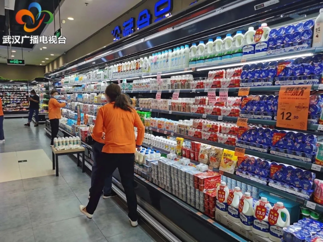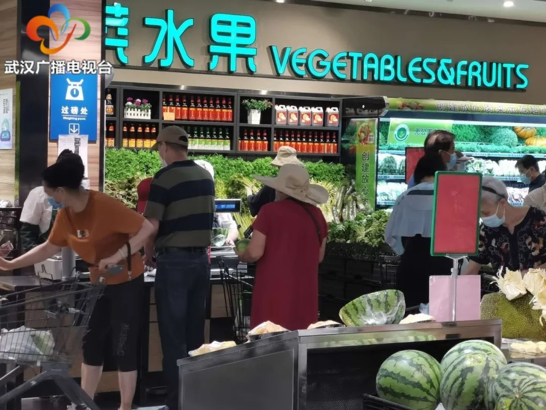 报道中介绍,目前武汉全市13家大型商超、200多家门店、400多座加油站均正常营业,确保民生商品不断档。