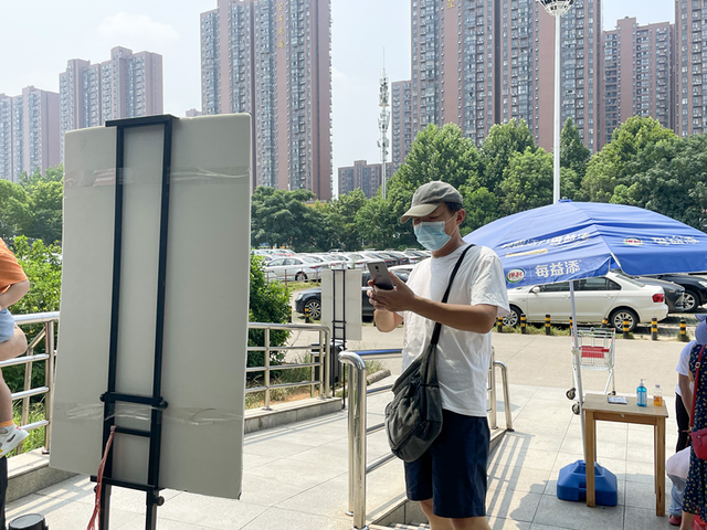在门店防疫举措上,几家商超在出入口等处均有专人值守,设有自动测温设备,配有消毒液等物品,市民扫码测温进入。在卖场进出口通道、收银台、打称台“一米线”设置明显,提醒市民做好防护的广播在循环播放。