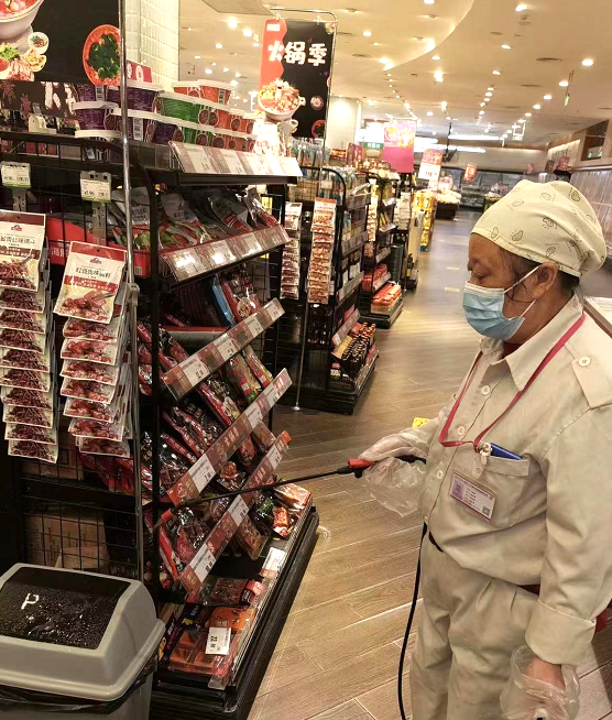 细化各项防疫措施,营业场所每日坚持三次系统全面的消杀,严格落实扫码测温查验,员工按要求严格佩戴口罩、测核酸、量体温上岗,全力为消费者营造舒适安心、干净整洁的购物环境。