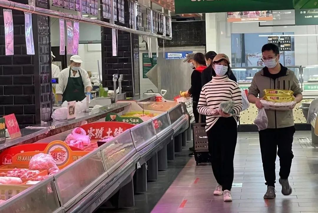 11月20日20:00,在中商徐东平价广场店内,蔬菜、米面粮油以及肉类货品种类丰富,市民朋友在店内有序选购。