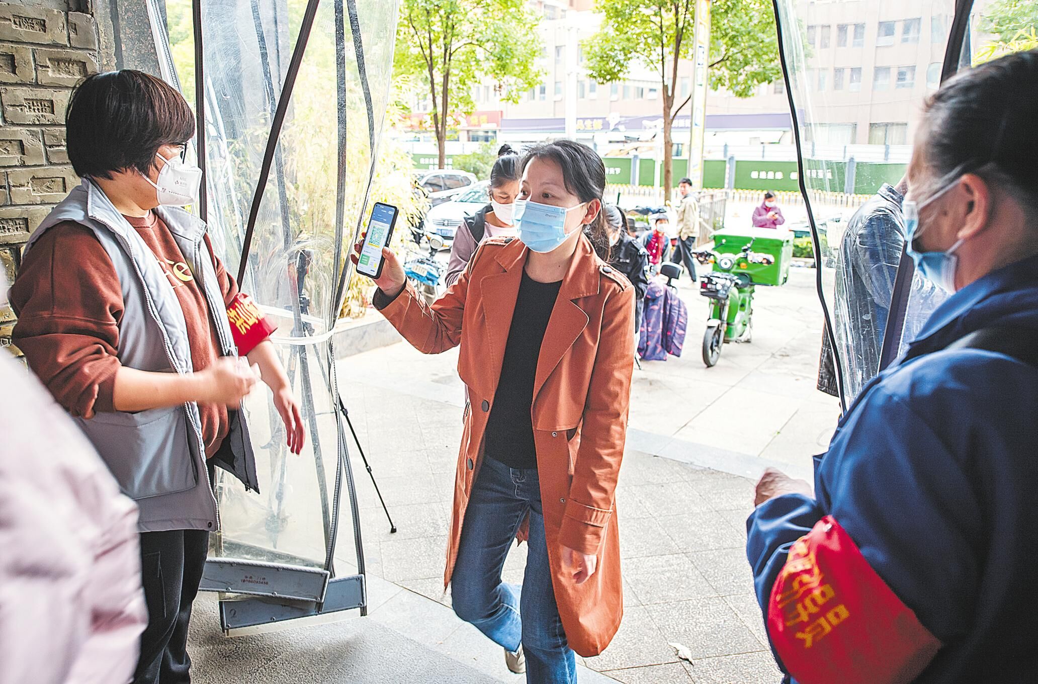 11月21日,武汉市洪山区星悦城生鲜市场严格执行“扫码、测温、戴口罩”等防疫举措,助力武汉疫情防控。在市场入口处,工作人员正认真查看市民的健康码,通过扫码、测温后方可进入菜市场购物。