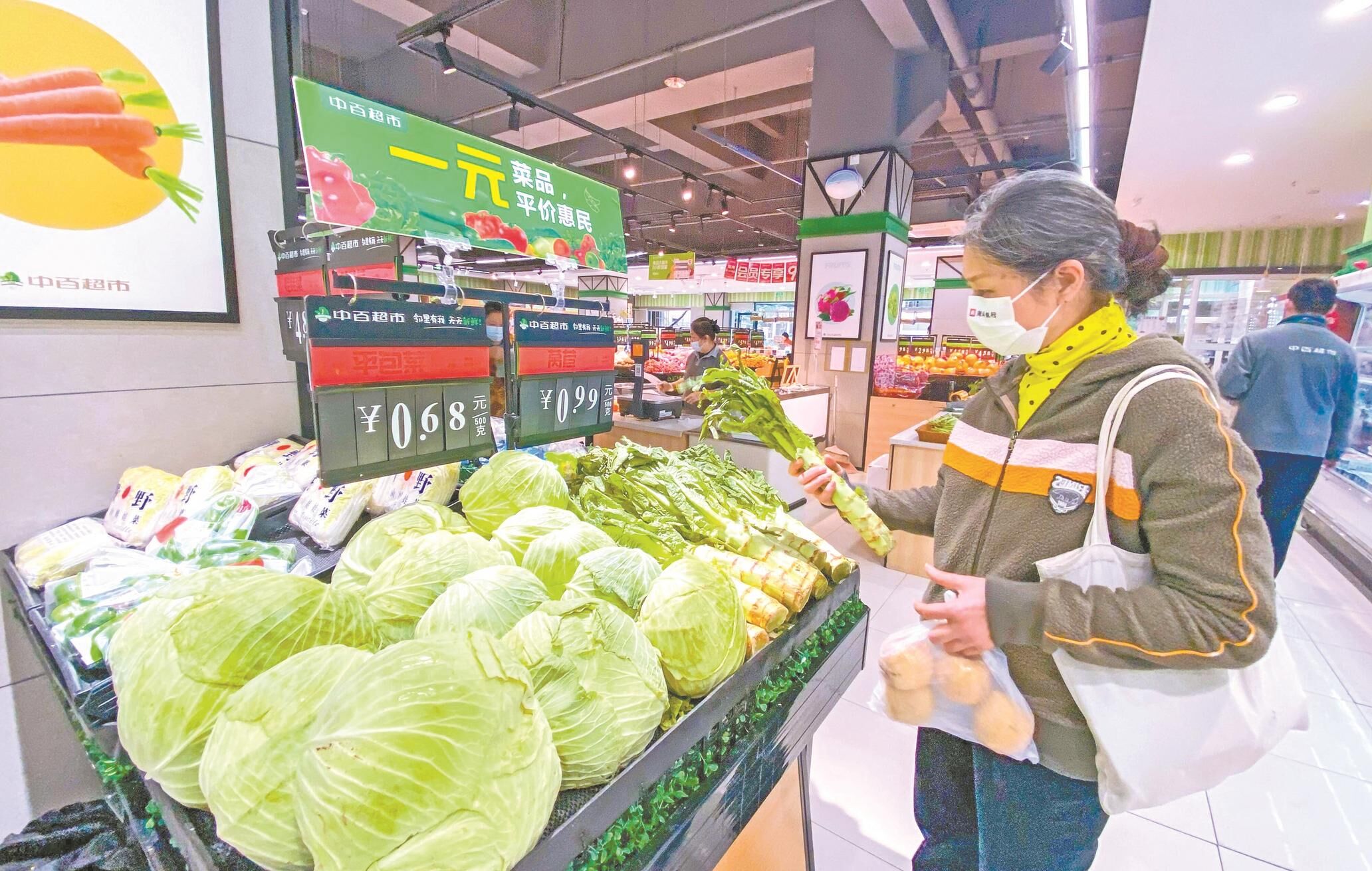 11月中旬以来,江城本地蔬菜价格不升反降。昨日,武汉市武昌区黄鹂路中百超市内,顾客正在挑选菜品。 在生鲜区域,记者看到不少菜品单价低于1元。目前,武汉多家商超通过直采平价应季菜品等举措,稳物价,保供应。