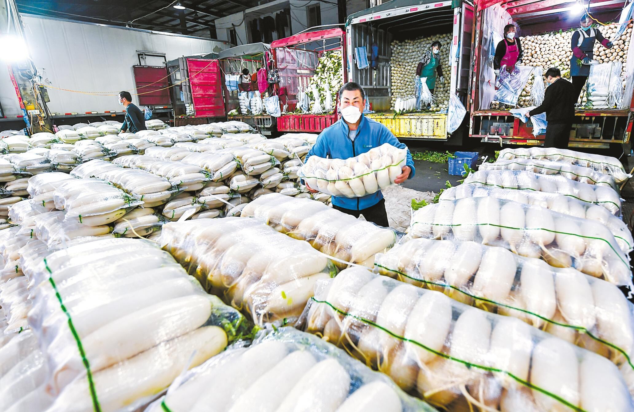 11月27日清晨,武汉市白沙洲农副产品大市场内,车水马龙,一片繁忙景象。白沙洲农副产品大市场作为武汉最大的“菜篮子”,为武汉大型商超提供定点采购服务,同时为社区提供送货上门服务,让“菜篮子”供应更暖心。