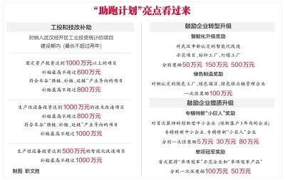 “助跑计划”包括支持企业生产用房、扩大规模、加大投入、开拓市场,奖励企业转型升级、提质升级,保障企业成长要素,激励企业管理团队,优化企业服务环境,促进产业链协作等10条支持措施,共计20条奖励条款。