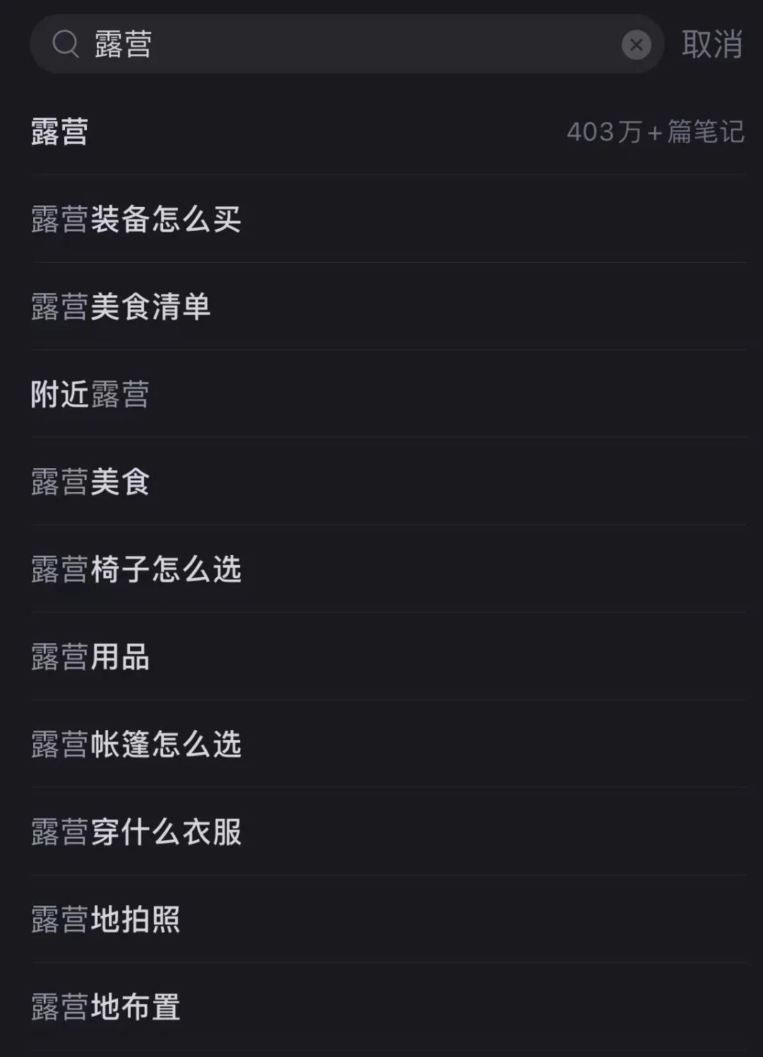 根据小红书数据,截至发稿日期,搜索“露营”已有403万+篇笔记。