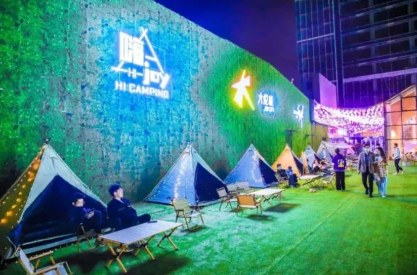 为了迎合当下最热门的生活潮流,各大商业体也纷纷打造以“露营”为主题的体验活动。