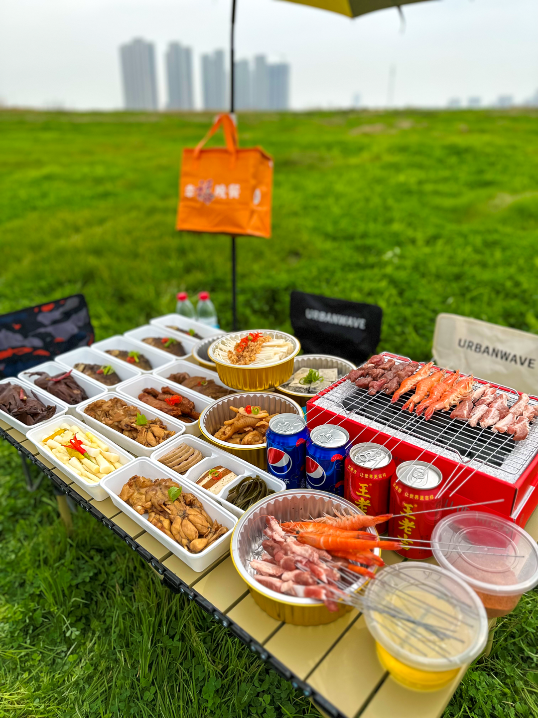 武汉的部分餐厅也紧跟商机,推出了露营餐饮套餐,配送至公园或露营基地,游客稍微加工即可享用美食。