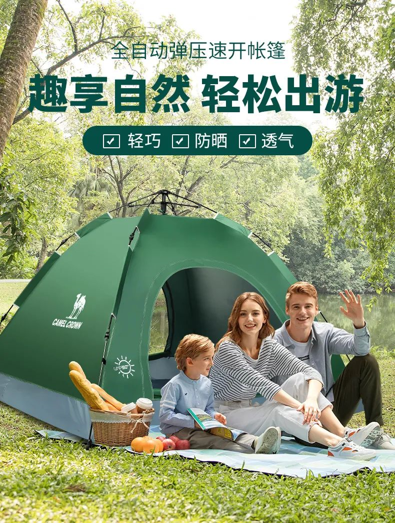 比如,「骆驼」针对露营消费者需求,开启了“自动充气”帐篷革命,研发从帐篷到天幕等一系列一键自动充气产品。其推出的第九代全自动液压帐篷,截至2022年11月单款销售超过200万顶。