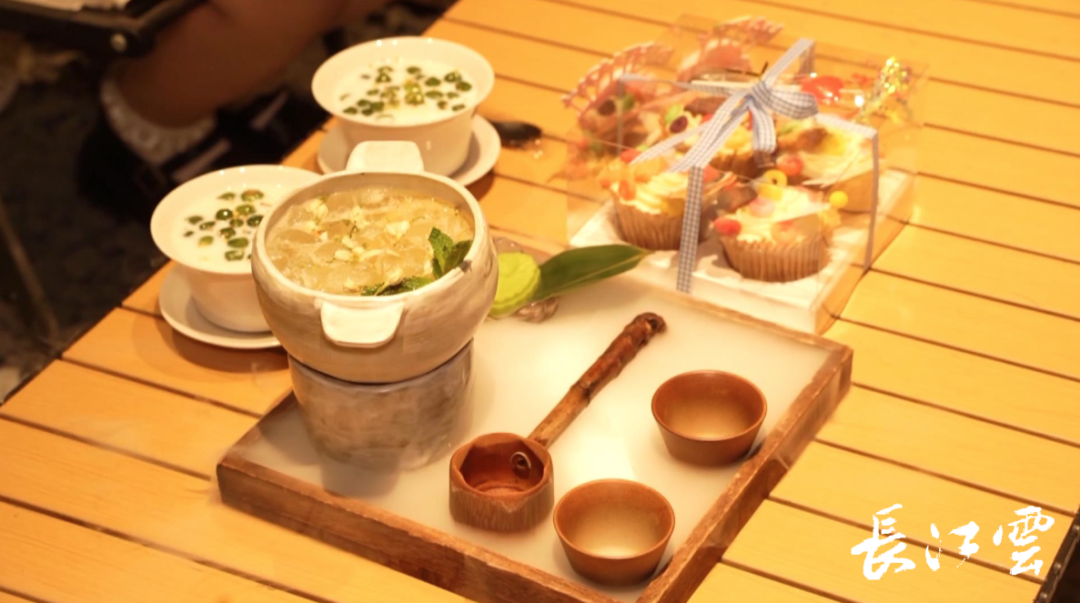 武汉流浪乌龟日茶夜酒创始人别泽强表示,夏季推出的“围炉冰茶”,每天大概能卖出70到80份。套餐包含了4到5种茶叶,还搭配了一个中式的小提篮,提篮里面有8种小吃,茶底结合湖北地域文化,特地选择了恩施玉露茶。